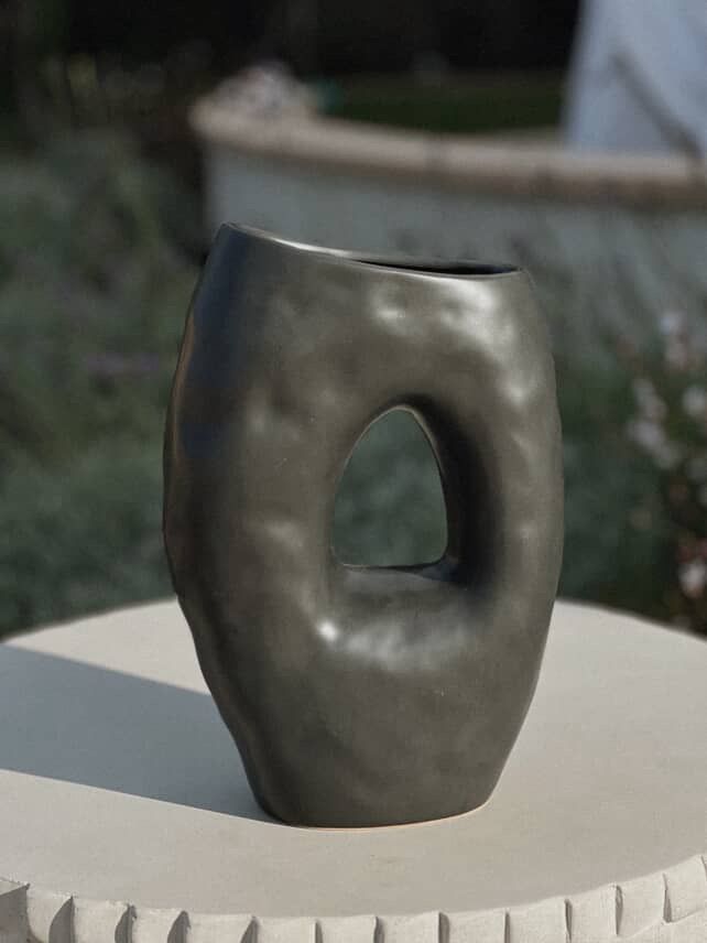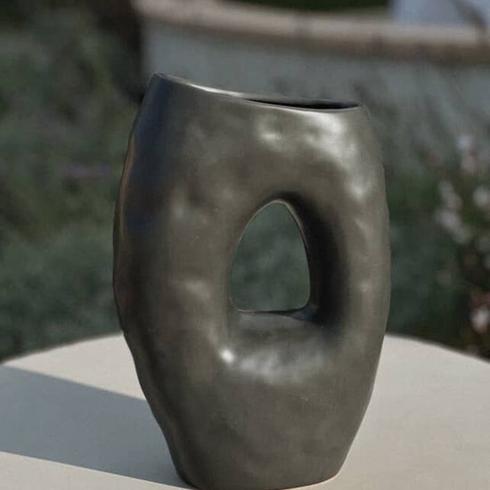 Shaped with a gentle, hand-hewn feel, the Haven Loop Vase turns negative space into calm. Its oval cutout and softly dimpled surface invite light to pass through, bringing a quiet sculptural presence to shelves, consoles, and windowsills. Available in Black (matte), White (matte), and Silver (mirror-polished), it’s an easy way to add contrast or glow within a hygge-inspired room.
