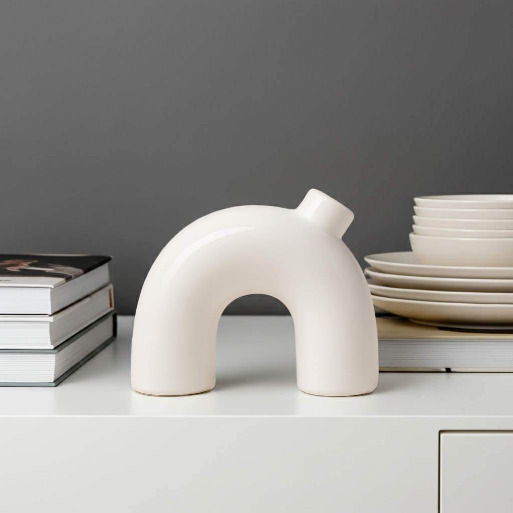 The Lumo Vase is a celebration of playful form and quiet charm. Its sculptural arch-like silhouette feels almost like a modern totem, striking a balance between whimsy and sophistication. Whether in sleek black or luminous white, Lumo becomes more than a vessel - it’s a conversation starter, an accent that sparks curiosity while remaining rooted in hygge-inspired calm.