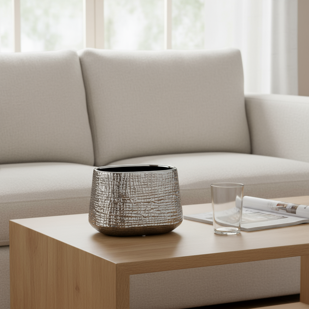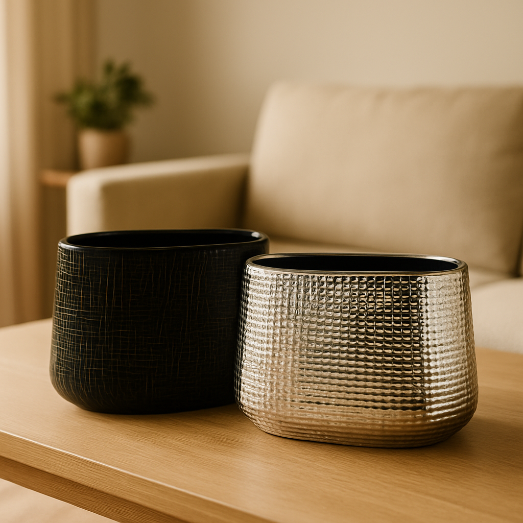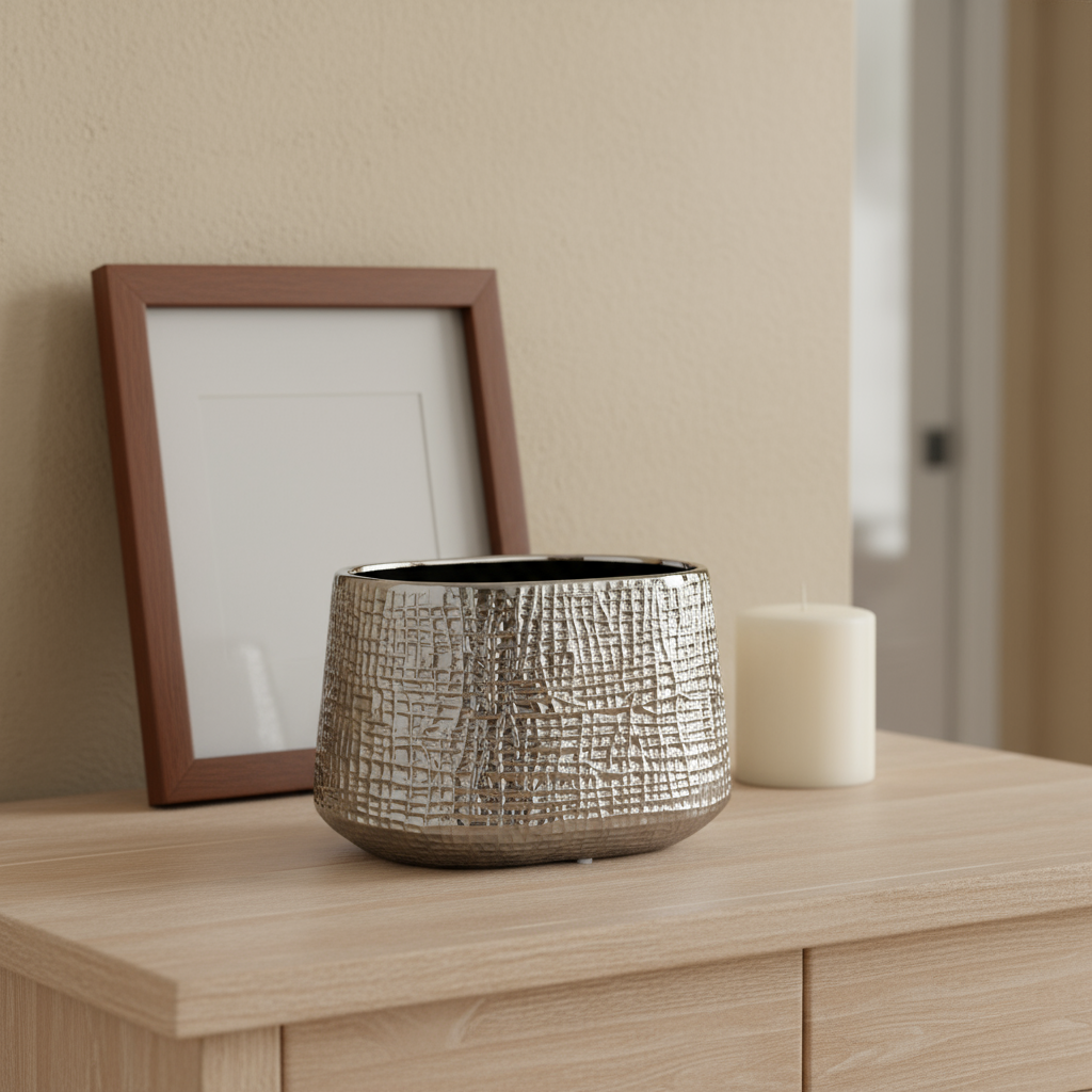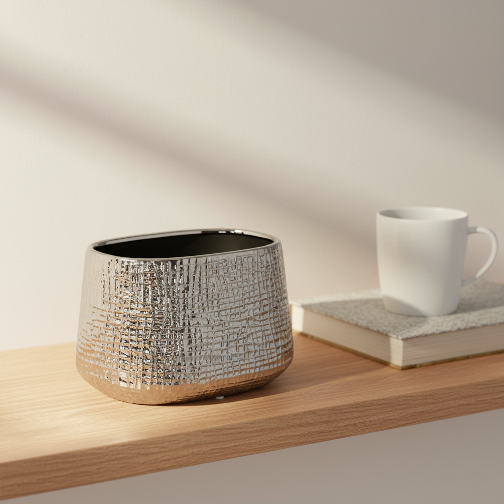 The Noora Vase embodies quiet sophistication, where light and shadow play across its deep, glossy surface. Its textured finish catches soft daylight in subtle ways, giving the impression of woven patterns or rippling reflections. Like a glowing lantern at dusk, it adds depth and intrigue to any room, balancing coziness with a touch of modern elegance.