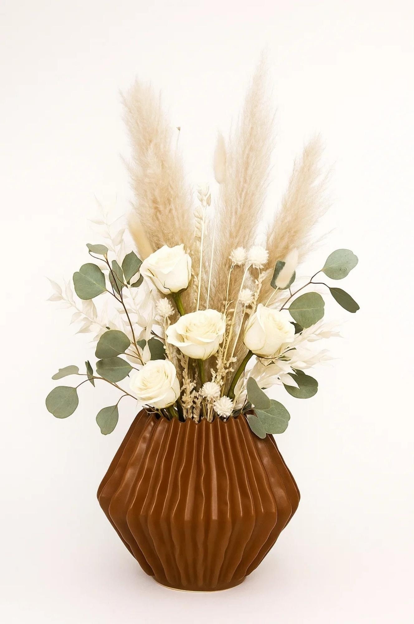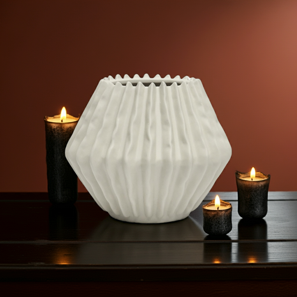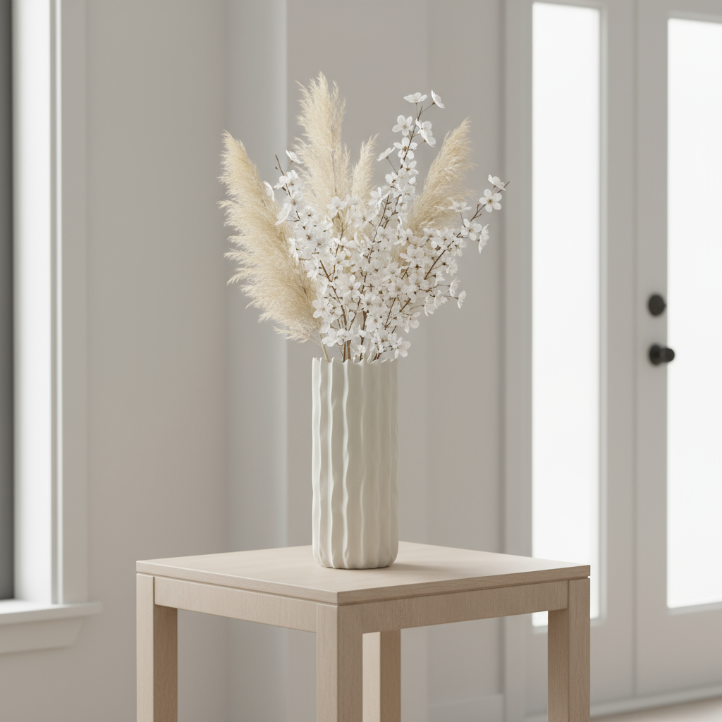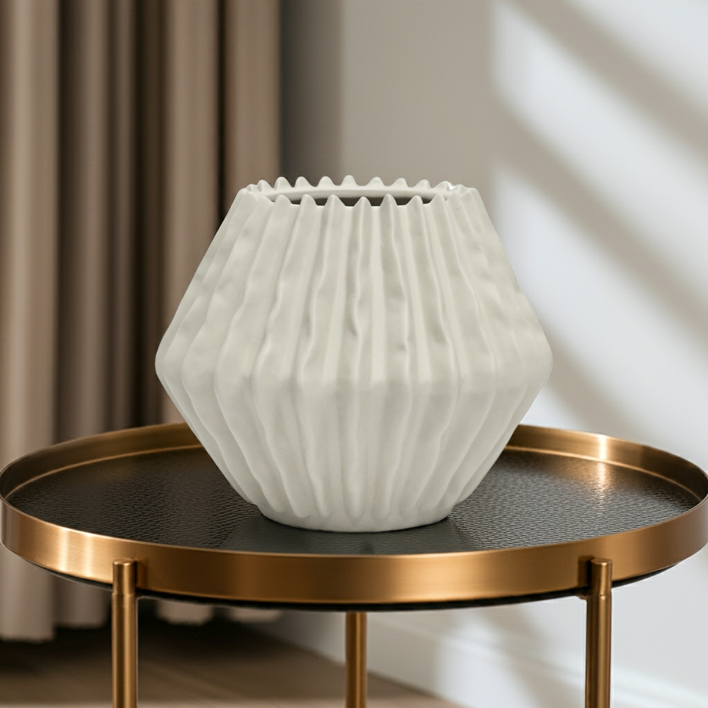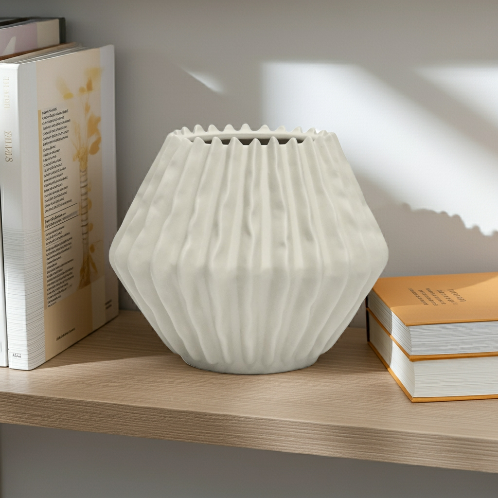 Softly rounded with a tactile ceramic texture, the Noya Vase brings a cozy, lived-in warmth to shelves, window ledges, and bedside tables.