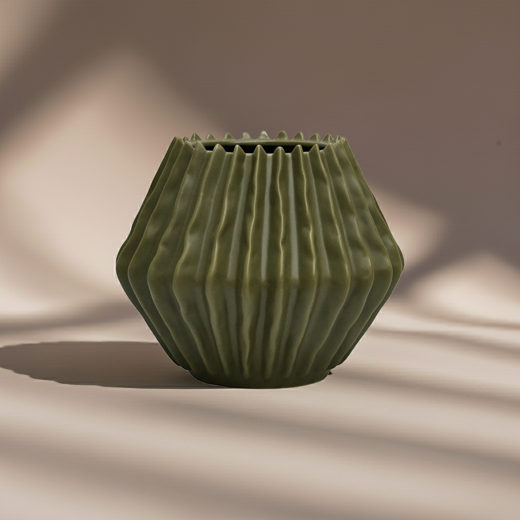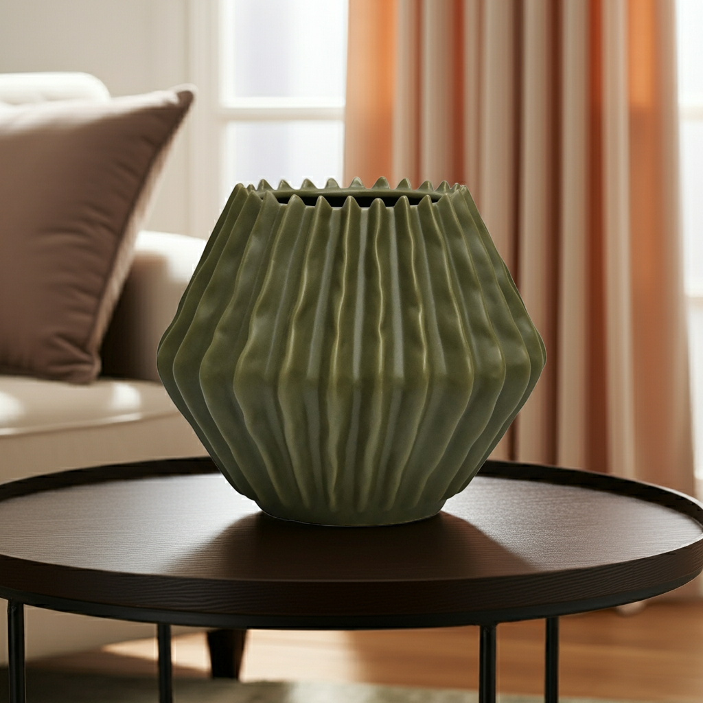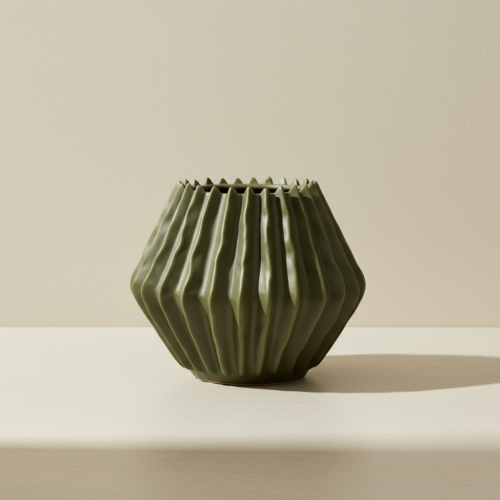Finished in a calm mossy green, it’s sized 6" H × 4" W × 4" L - just right for a single garden stem, a petite bundle of wildflowers, or simply as a small sculptural accent that makes any corner feel cared for.