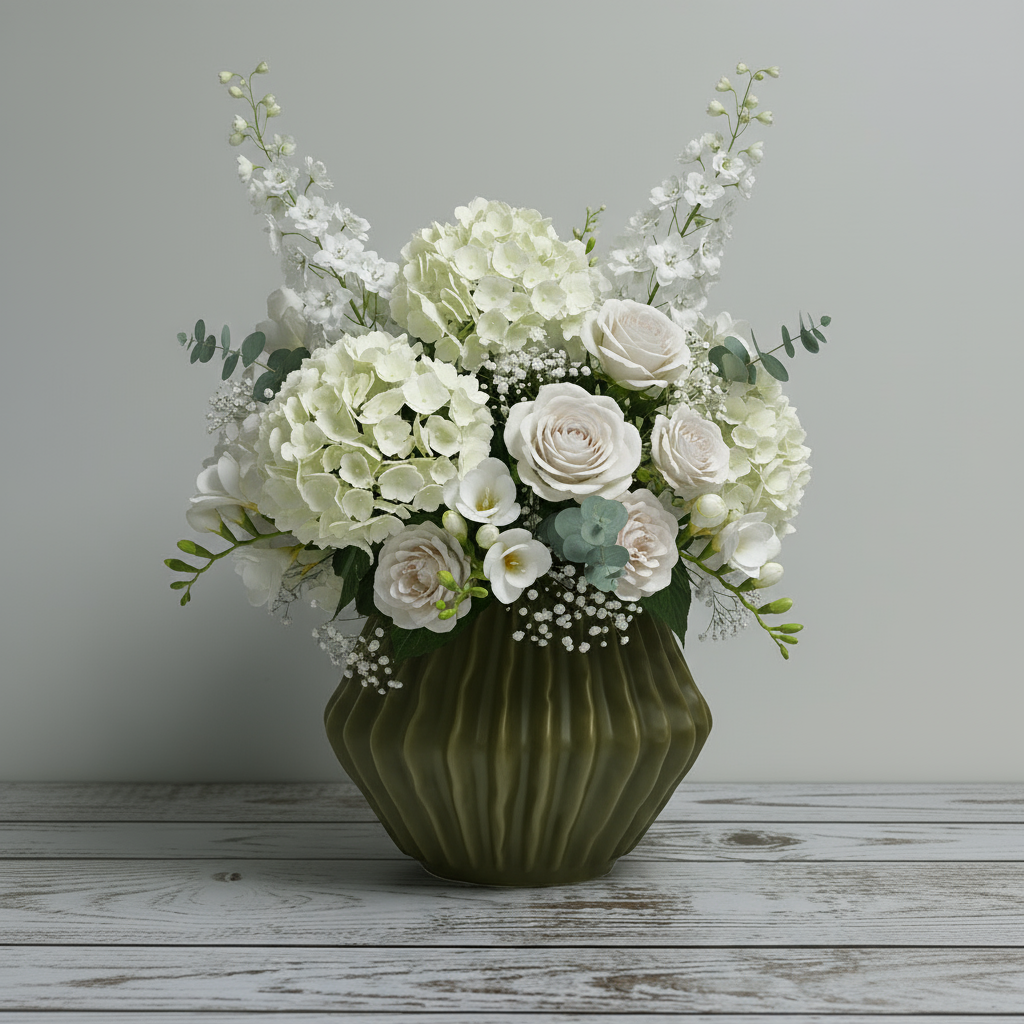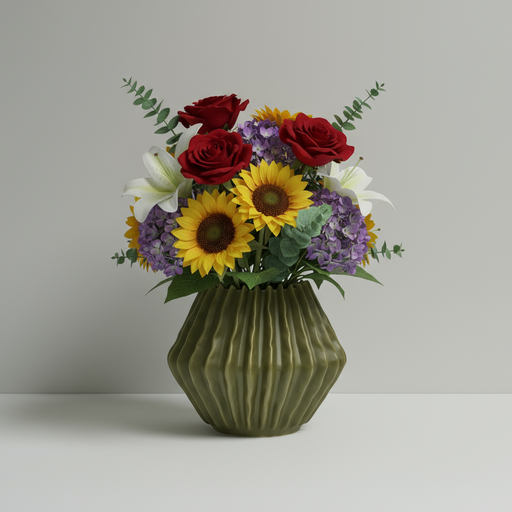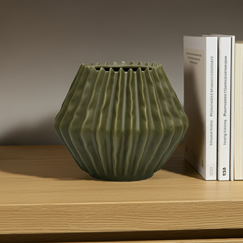 Finished in a calm mossy green, it’s sized 6" H × 4" W × 4" L - just right for a single garden stem, a petite bundle of wildflowers, or simply as a small sculptural accent that makes any corner feel cared for.
